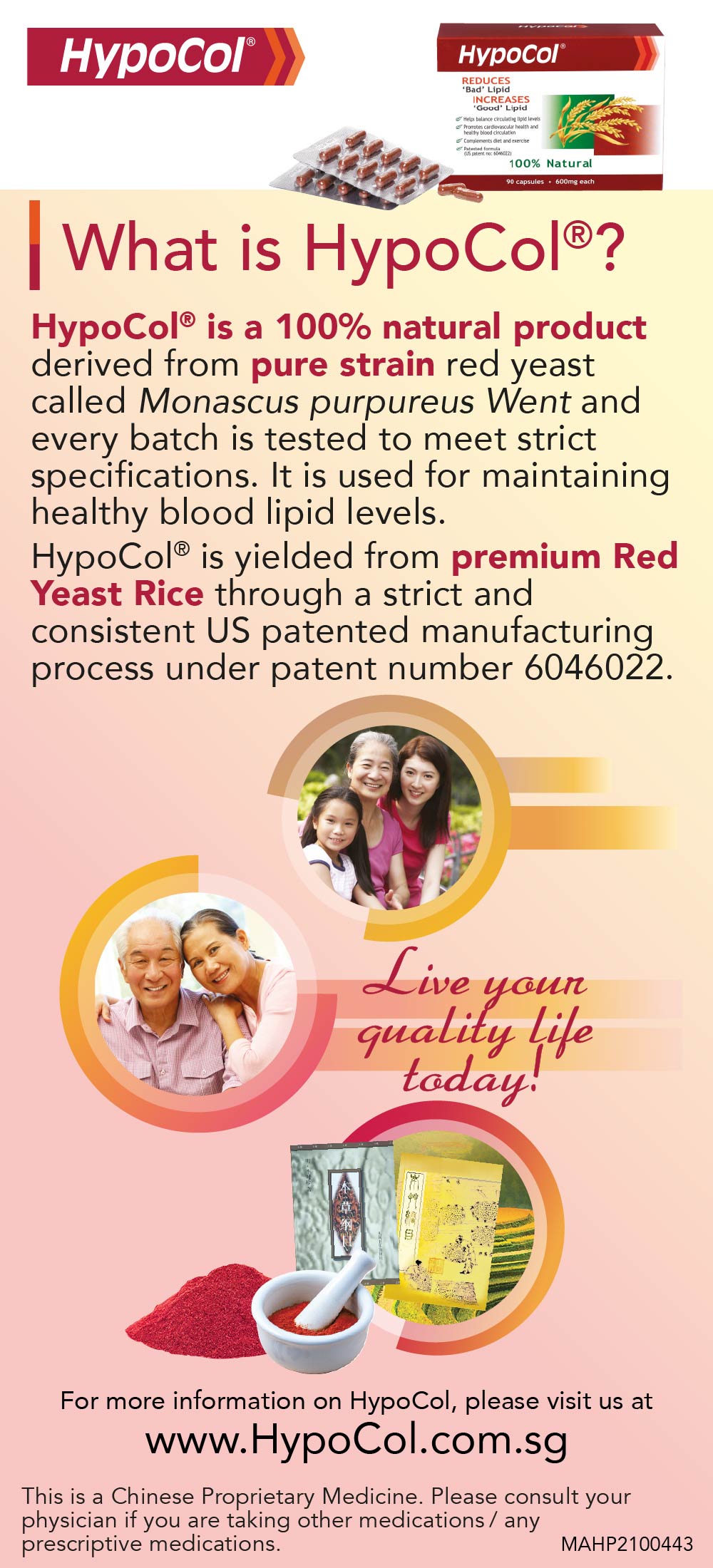 HypoCol® is a 100% natural product derived from pure strain red yeast called Monascus purpureus Went and every batch is tested to meet strict specifications. It is used for maintaining healthy blood lipid levels.