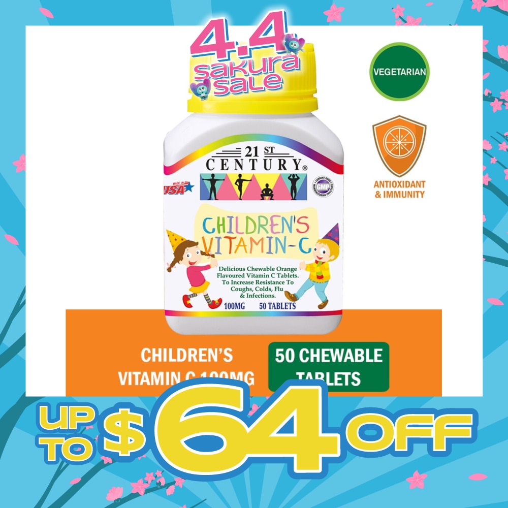 21st CENTURY Children's Chewable Vegetarian Orange Flavoured Vitamin C Tablets (Maintain Body Resistance) 100mg 50s