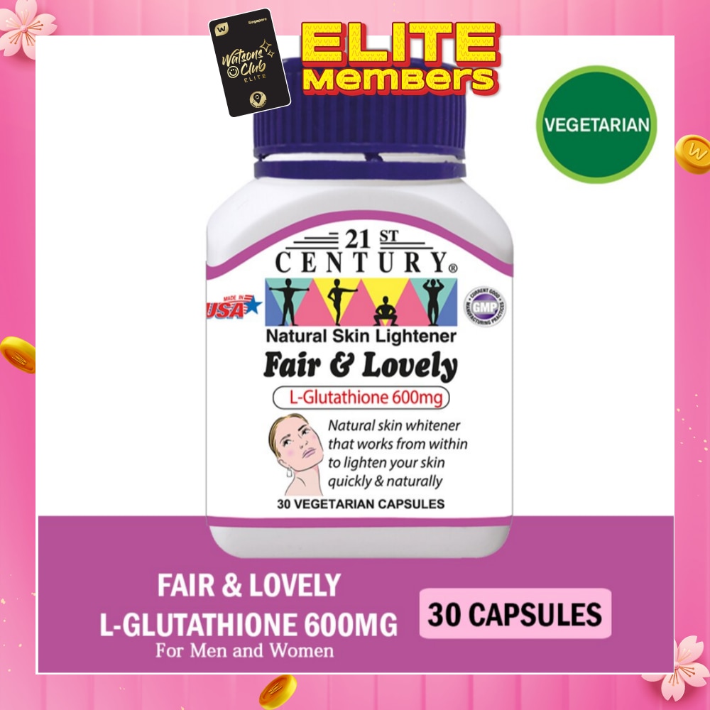 21st CENTURY Fair & Lovely L-Glutathione 600mg Vegetarian Capsules (Natural Skin Lightener) 30s