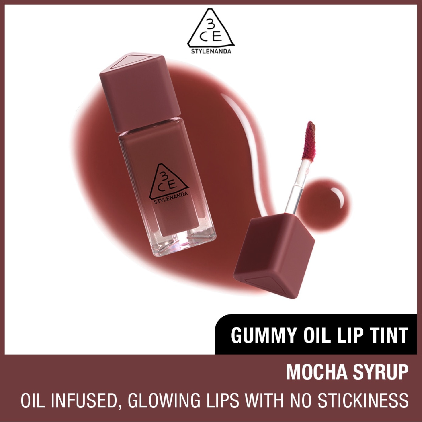 3CE Gummy Oil Lip Tint #05 Mocha Syrup 1s