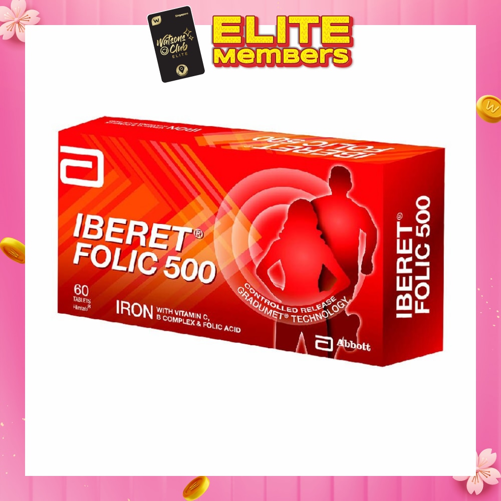 ABBOTT Iberet Folic 500 Iron with Vitamin BC & Folic Acid Tablets (Promote Iron Absorption) 60s