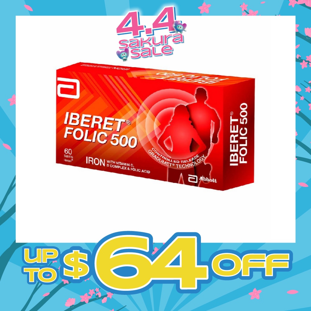 ABBOTT Iberet Folic 500 Iron with Vitamin BC & Folic Acid Tablets (Promote Iron Absorption) 60s