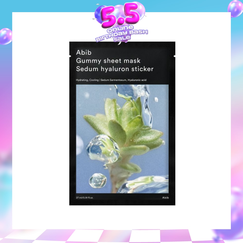 ABIB Gummy Sheet Mask Sedum Hyaluron delivers intense hydration with its unique gummy texture, infused with sedum extract and hyaluronic acid to deeply moisturize and soothe your skin. Perfect for a revitalizing, plump, and glowing complexion after just one use. Ideal for dry, tired skin.