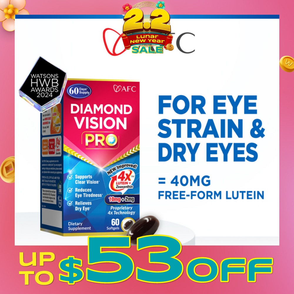 Prolonged use of digital devices and accomodative stress from near focal work could lead to eye fatigue, dry eyes, red eyes, blurred vision and cumulative damage to the retina, and increase the risk of age-related eye conditions. Diamond Vision PRO provides crucial nutritional support for your eyes. 4X Lutein and Zeaxanthin offers easier and quicker absorption than conventional free-form lutein. Diamond Vision PRO is fortified with a spectrum of essential eye nutrients which work synergistically to support optimal visual performance.