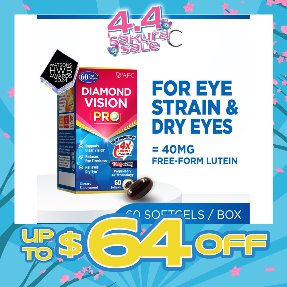 Prolonged use of digital devices and accomodative stress from near focal work could lead to eye fatigue, dry eyes, red eyes, blurred vision and cumulative damage to the retina, and increase the risk of age-related eye conditions. Diamond Vision PRO provides crucial nutritional support for your eyes. 4X Lutein and Zeaxanthin offers easier and quicker absorption than conventional free-form lutein. Diamond Vision PRO is fortified with a spectrum of essential eye nutrients which work synergistically to support optimal visual performance.
