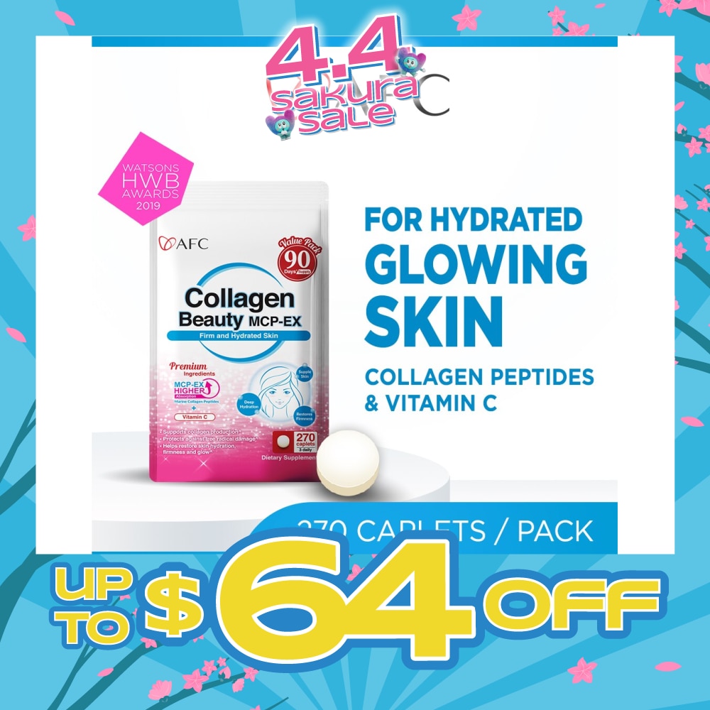 Discover visibly supple, luminous and firmer skin with AFC Japan Collagen Beauty MCP-EX! Developed from the award-winning AFC Japan Collagen Beauty, the proprietary ultra-small Marine Collagen Peptides from Japan is clinically proven to be 1.5X more absorbable than regular collagen.