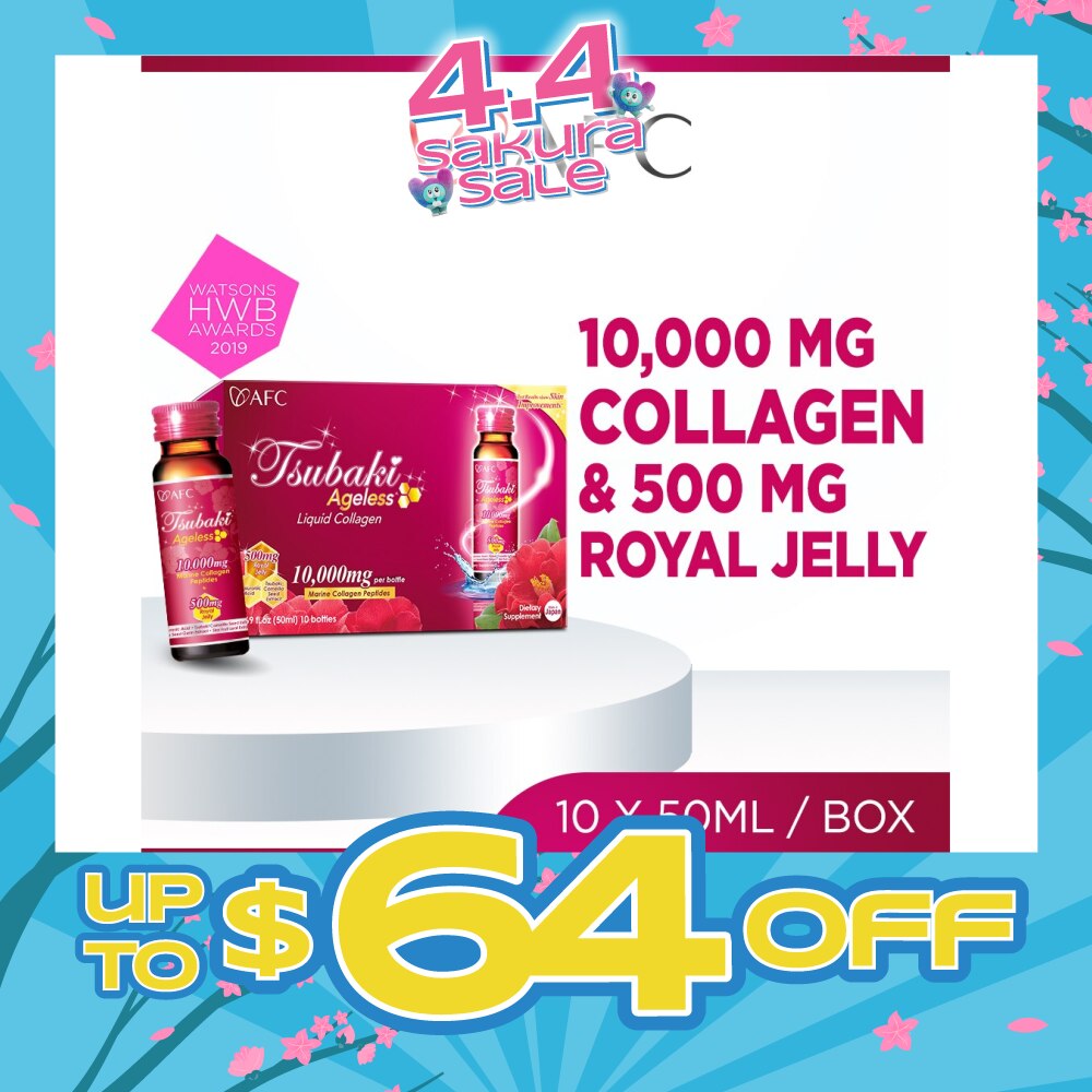AFC JAPAN Tsubaki Ageless Dietary Supplement bottle (Collagen Drink + Royal Jelly for Anti Aging, Radiant & Hydrated Skin + Fight Pigmentation & Acne Scar) 10s