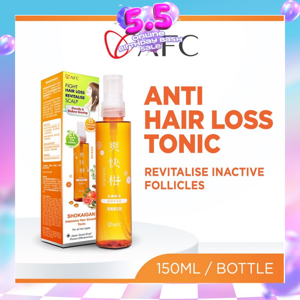 Spray liberally onto scalp, concentrating on problem areas. Massage in to promote better circulation and activate ingredients. Do not rinse. Style as usual. Use twice daily on dry or damp hair. For best results, use together with AFC Shokaigan Intensive Scalp Therapy Shampoo.