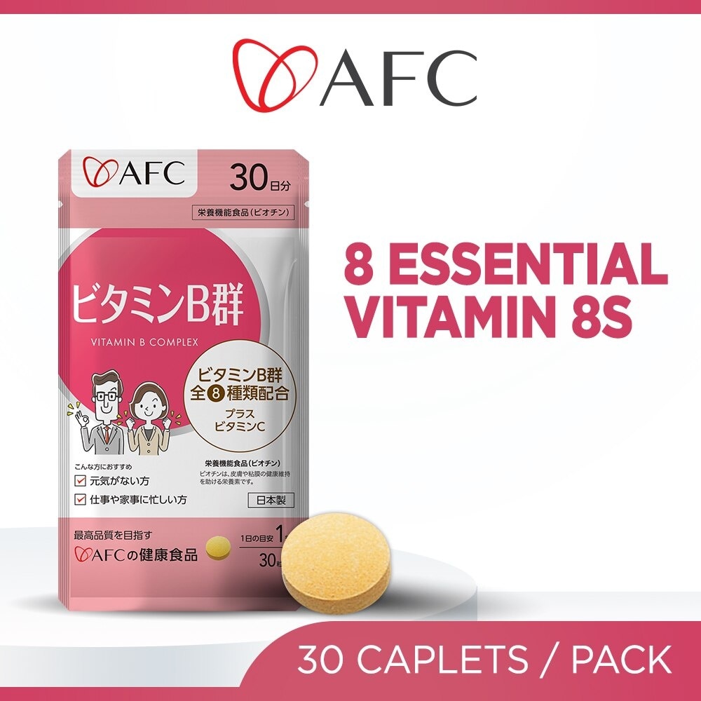 AFC Vitamin B Complex Dietary Supplement Caplet (Promote Metabolism, Energy Production, Relieve Fatigue, Improve Overall Well-being) 30s