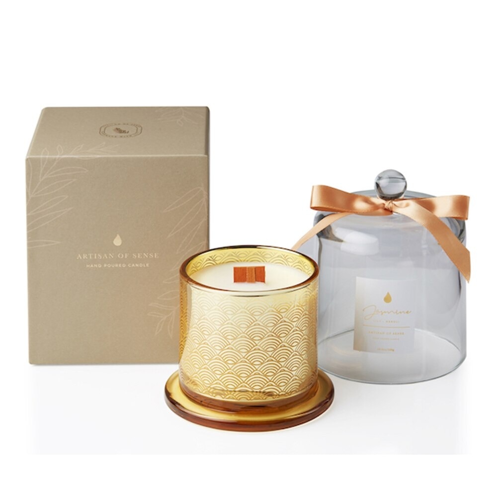 10.6oz. / 300g / 65+ Burning hours Native from eastern India and South Western China, this exotic floral aroma creates a calming and soothing atmosphere that promotes a peaceful state-of-mind. This candle is exclusively formulated from plant-based ingredients - eco-friendly soy wax, pure essential oils and organic wooden wick which creates the soothing sound of a crackling log fire. No phthallates, parabens, sulfates or toxins.