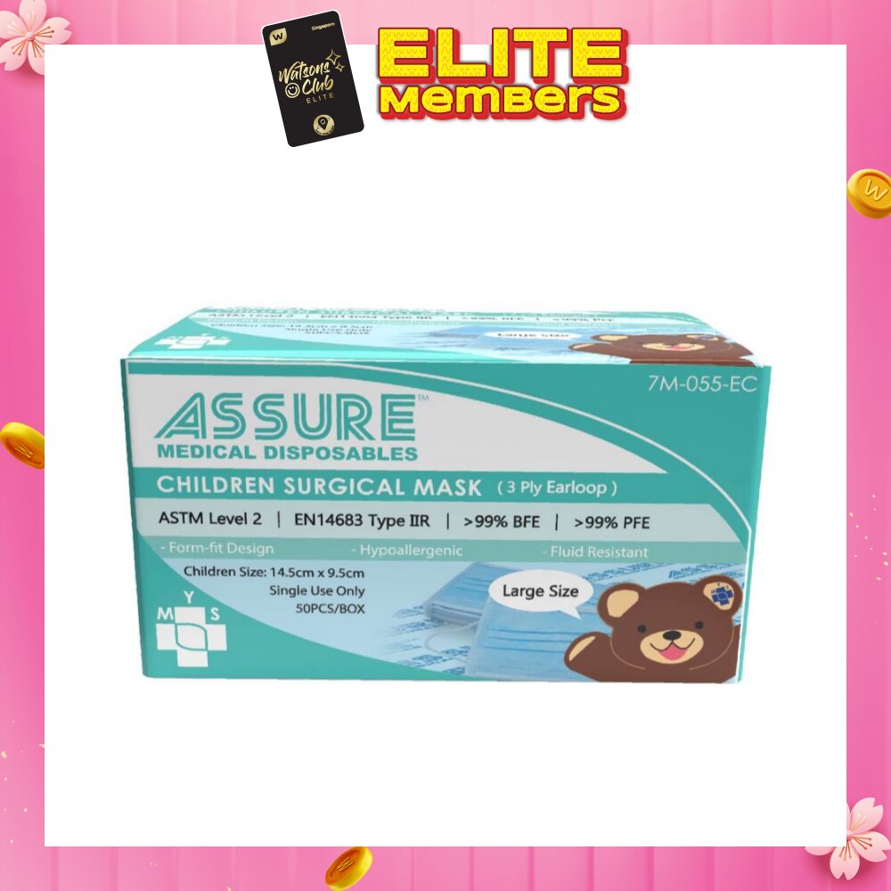 ASSURE 3ply Surgical Disposable Face Mask Earloop For Children/Kids (BFE >99% + PFE >99%) 50s