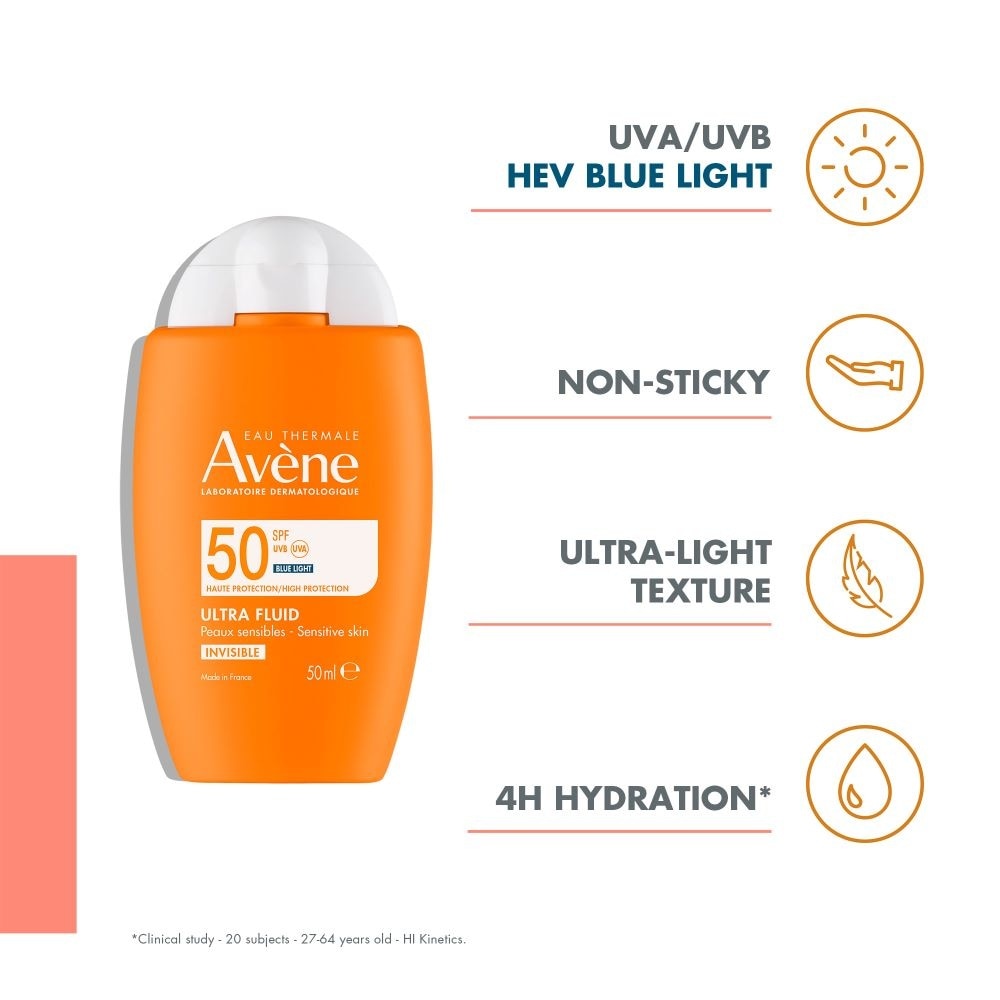 Ultra Fluid Invisible SPF50 40ml: Ultra Fluid INVISIBLE SPF50 offers high daily protection against UVB, UVA and HEV blue light to prevent photoaging.