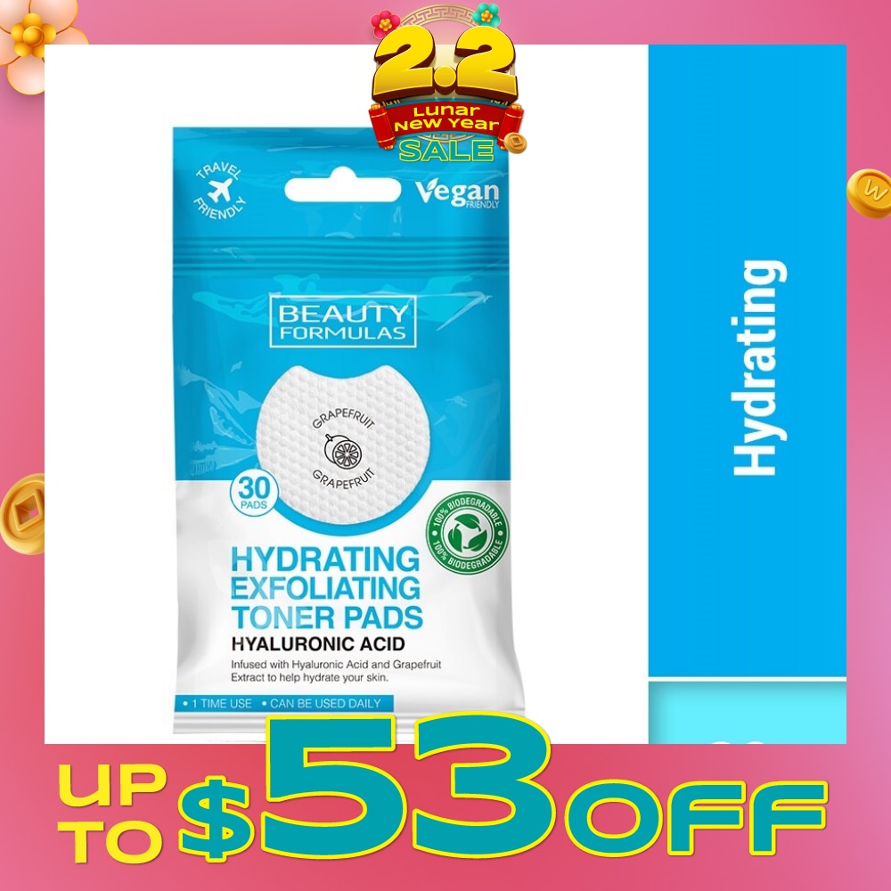 BEAUTY FORMULAS Hyaluronic Acid Exfoliating Toner Pad (To Help Hydrate Skin) 30s