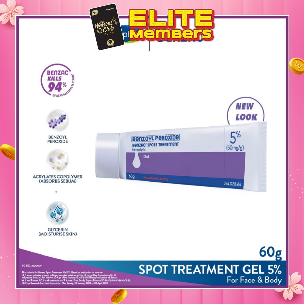 BENZAC Spots Treatment 5% (Anti-Acne / Pimple Gel Cream With Benzoyl Peroxide) 60g