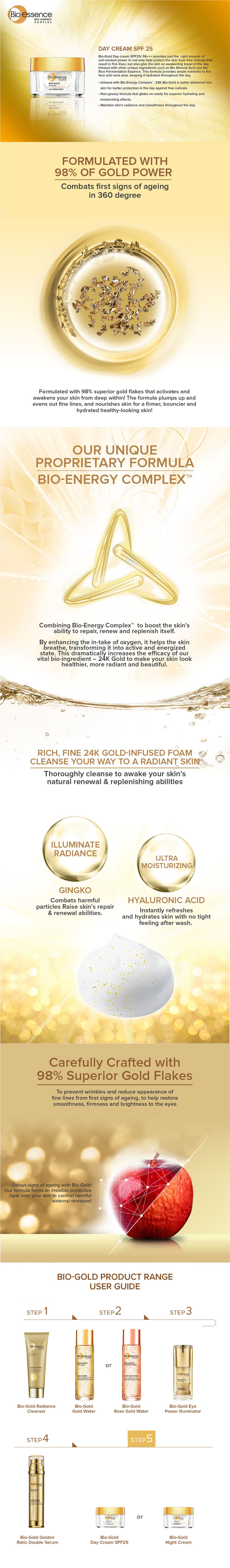 Infused with Bio Energy Complex™, 24K Bio-Gold is better delivered into skin for better protection in the day against free radicals. Maintains skin’s radiance and smoothness throughout the day.