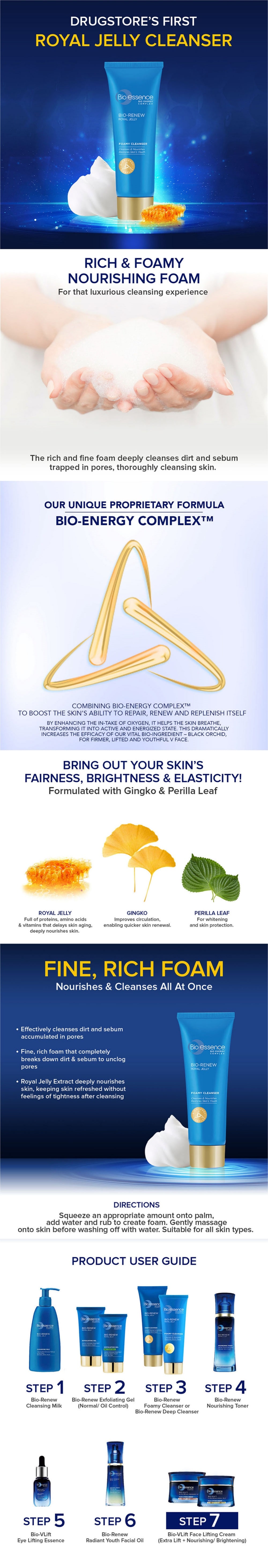 Bio Essence Bio Renew Foamy cleanser deeply nourishes skin with Royal Jelly while cleansing to leave skin fresh and smooth with no tight feeling after wash