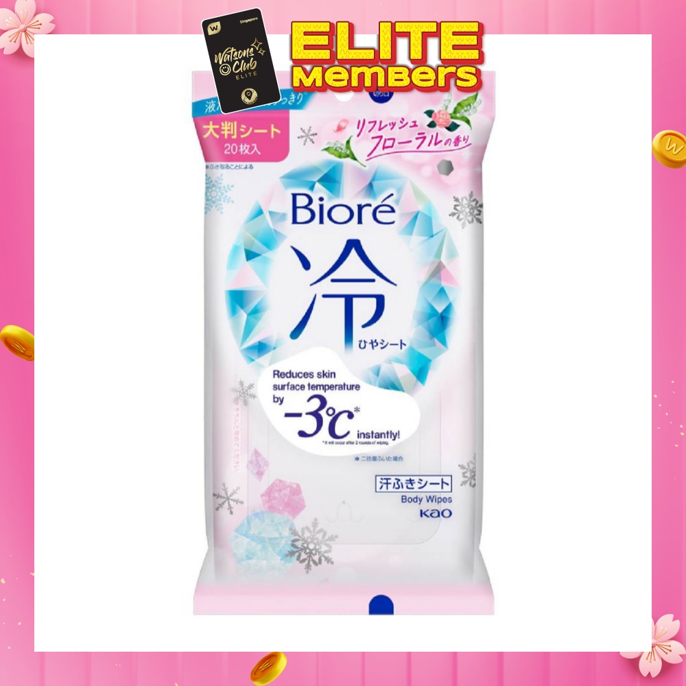 Biore Cool Body Sheets (Floral) removes sweat and odour while reducing skin surface temperate by -3øC! It is infused with cooling component that dissipates heat while you are wiping. Its thick sheet is more durable and difficult to tear so just 1 sheet is sufficient for the whole body! Also contains menthol for long lasting cool sensation. Floral Fragrance.