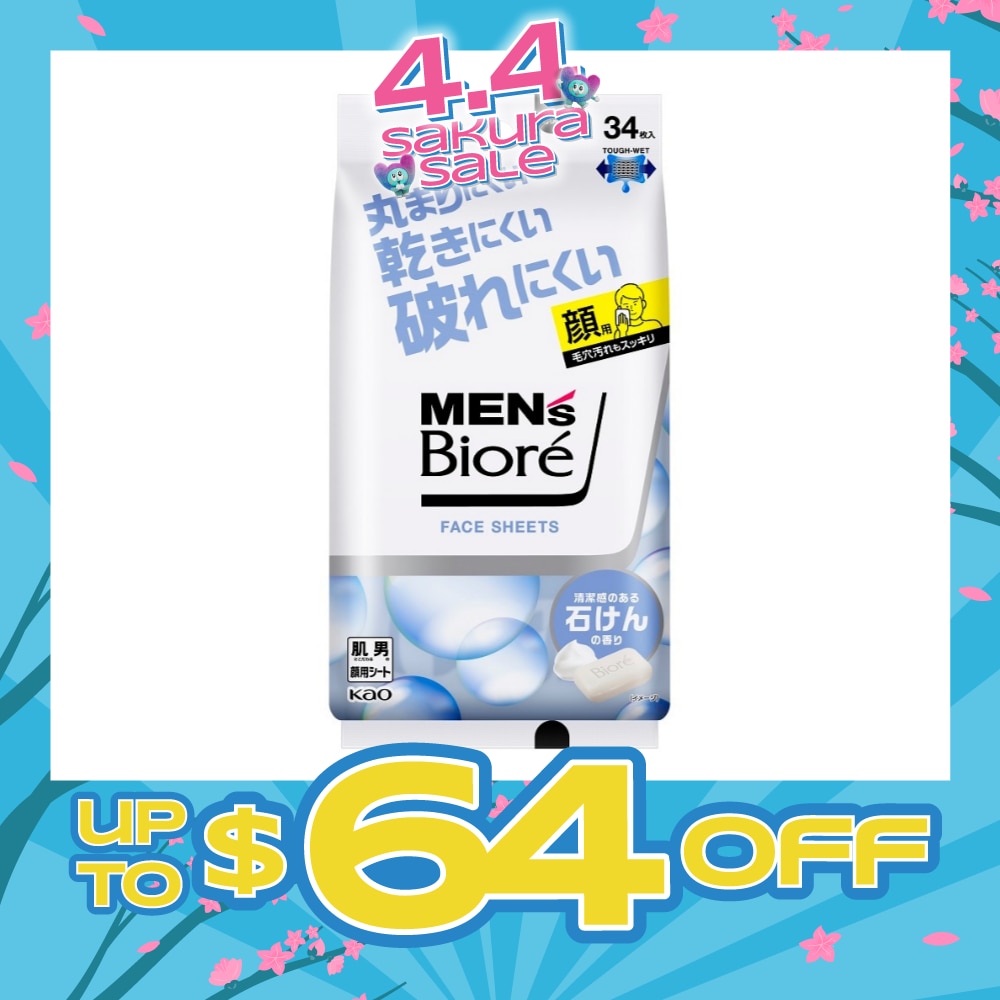 MEN'S BIORE Face Sheet Soap (Refreshing Face Wipes) 34s