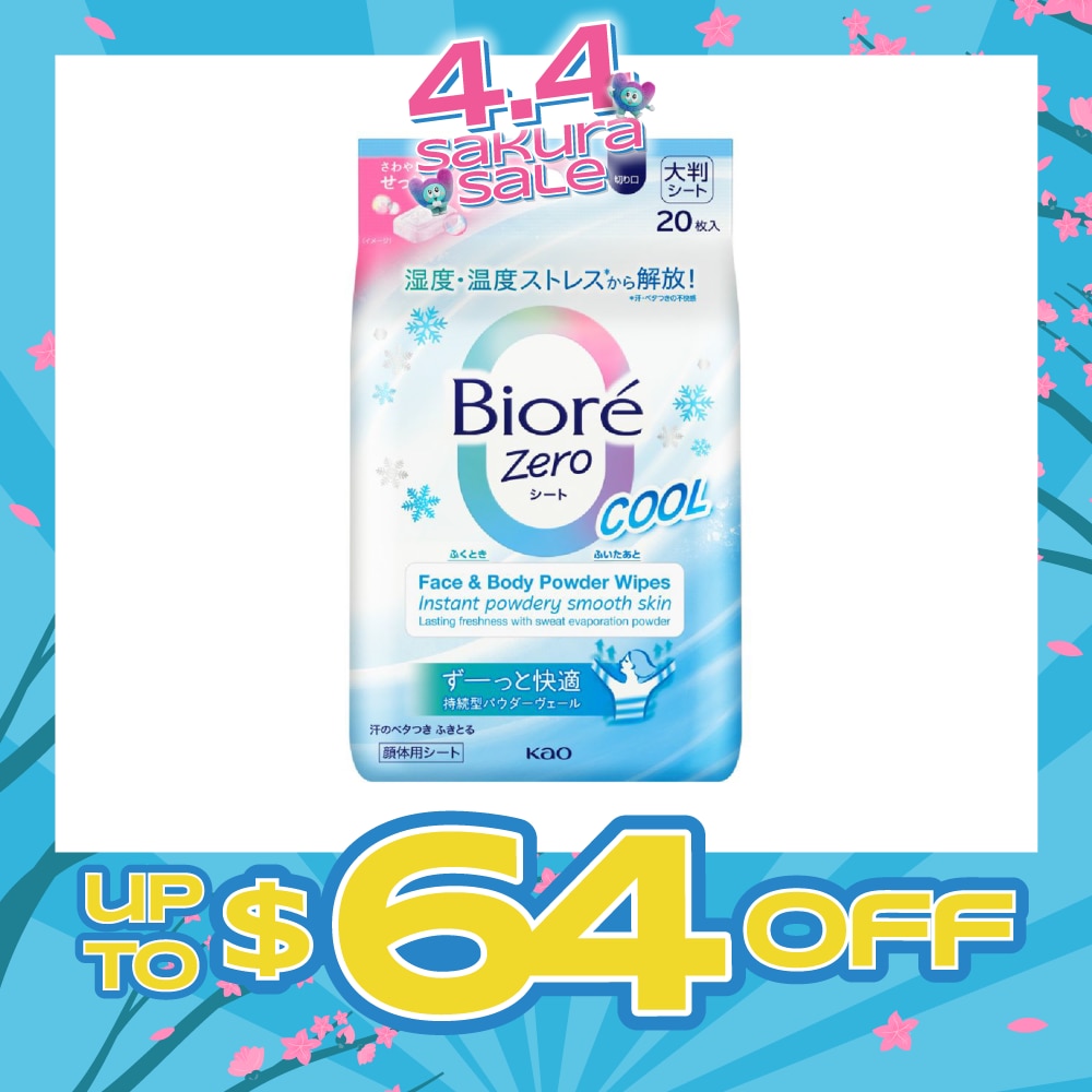 Bioré Zero Powder Cool Wipes Fresh Scent provides 3x freshness with lasting smooth skin!