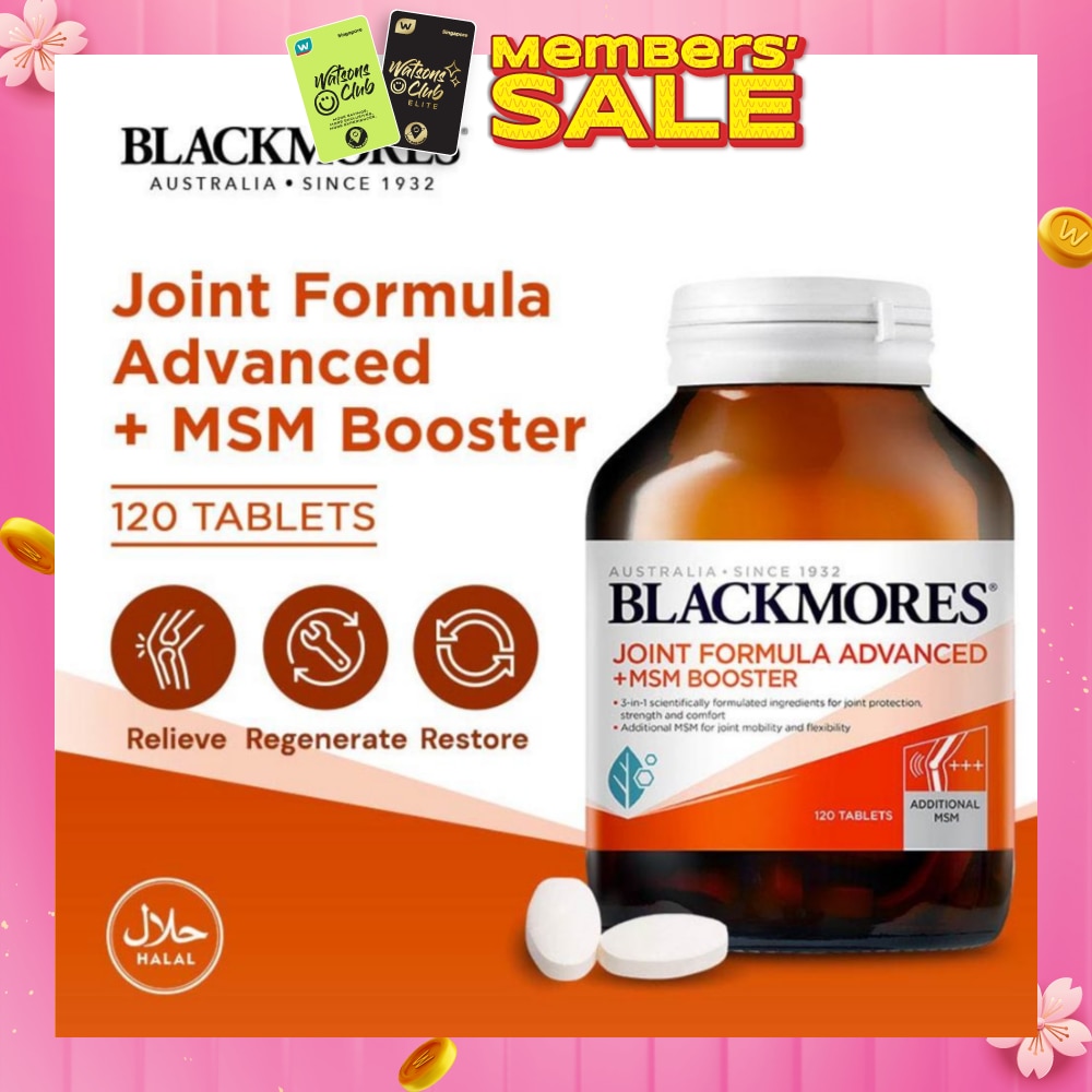 Blackmores Joint Formula Advanced + MSM Booster Tablet is a superior combination of 3 scientifically formulated ingredients (glucosamine, chondroitin and MSM) for multi action joint ease benefits. Provides targeted joint solution for multi action joint ease benefits so that you can move well without being stopped by aches and pains. Helps to enhance joint mobility, promotes joint flexibility , repairs joint cartilage, supports mild joint stiffness, relieves joint pain and reduce inflammation.