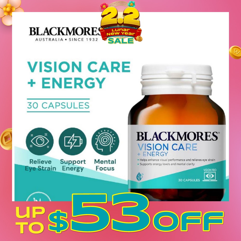BLACKMORES Vision Care + Energy is an advanced formula containing vitamins and plant extracts to provide supportive eye and energy formula for everyday use. Helps to relieve eye strain, support healthy eyesight and eye function, energy levels and maintain mental focus and concentration. Also assist the body to cope with environmental stress and reduce free radicals formed in the body.