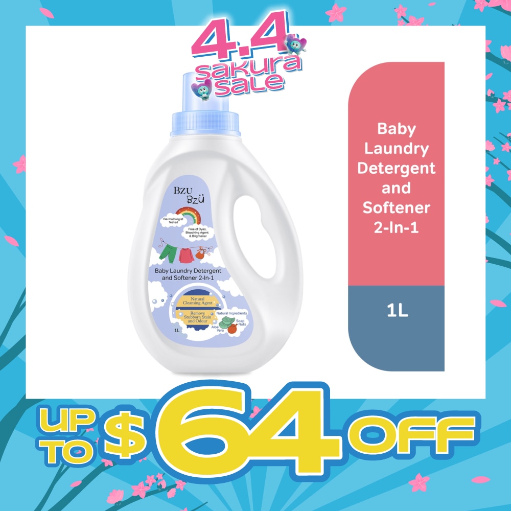 BZU BZU 2 in 1 Baby Laundry Detergent and Softener Natural Cleansing Agent (Remove Stubborn Stain & Odour) 1L