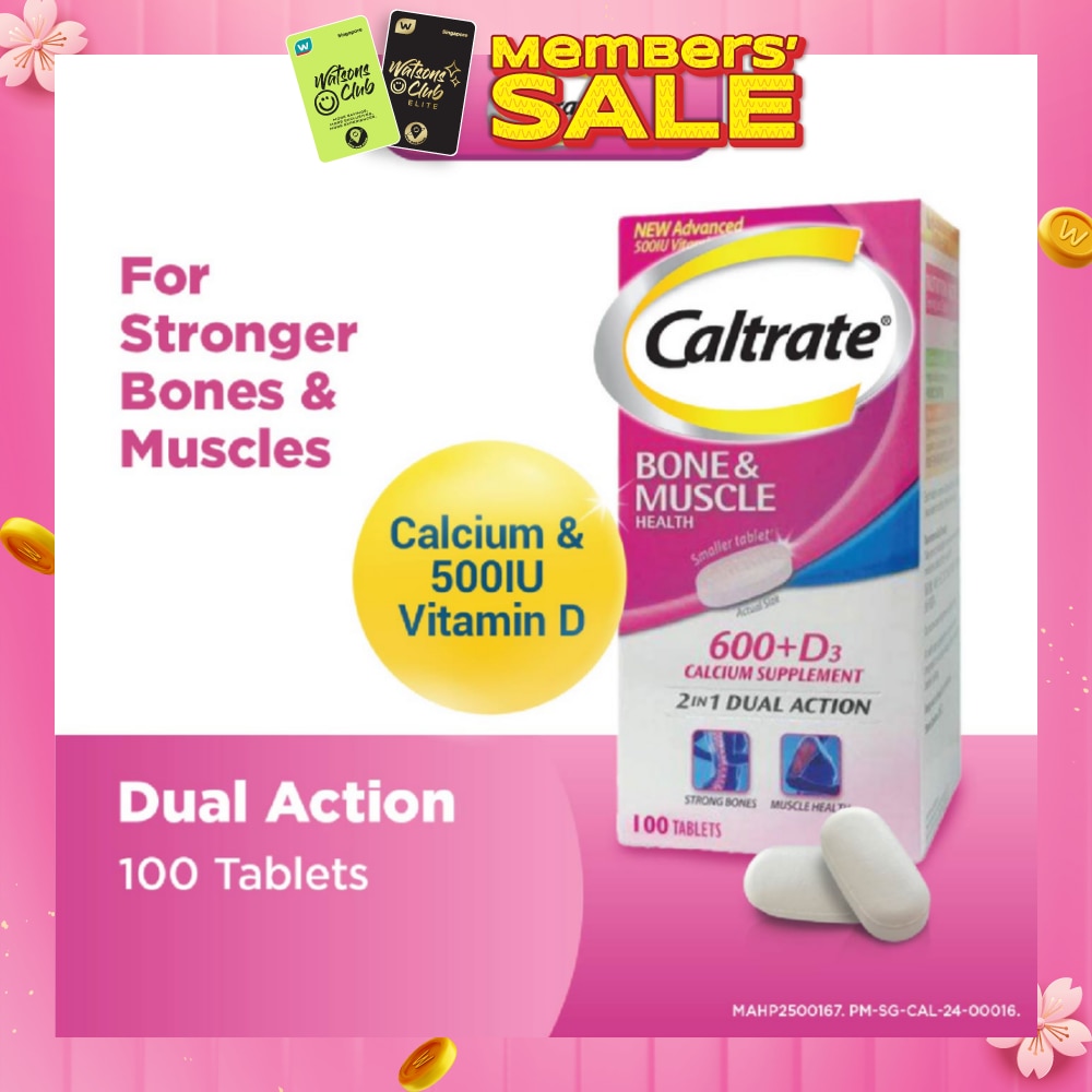 Caltrate Bone & Muscle Health contains vitamin D which helps to maintain healthy bones and muscles, supporting muscle balance which are important to prevent falls that might lead to subsequent fractures. Vitamin D also helps in optimal calcium absorption for strong bone health. Clinical studies show that vitamin D contained in Caltrate can support muscle strength, helping to reduce overall fracture risk in both men and women. Can be taken with multivitamin supplement, specially designed and film coated for easier swallowing and tested to meet United States Pharmacopeia standards for dietary supplements.