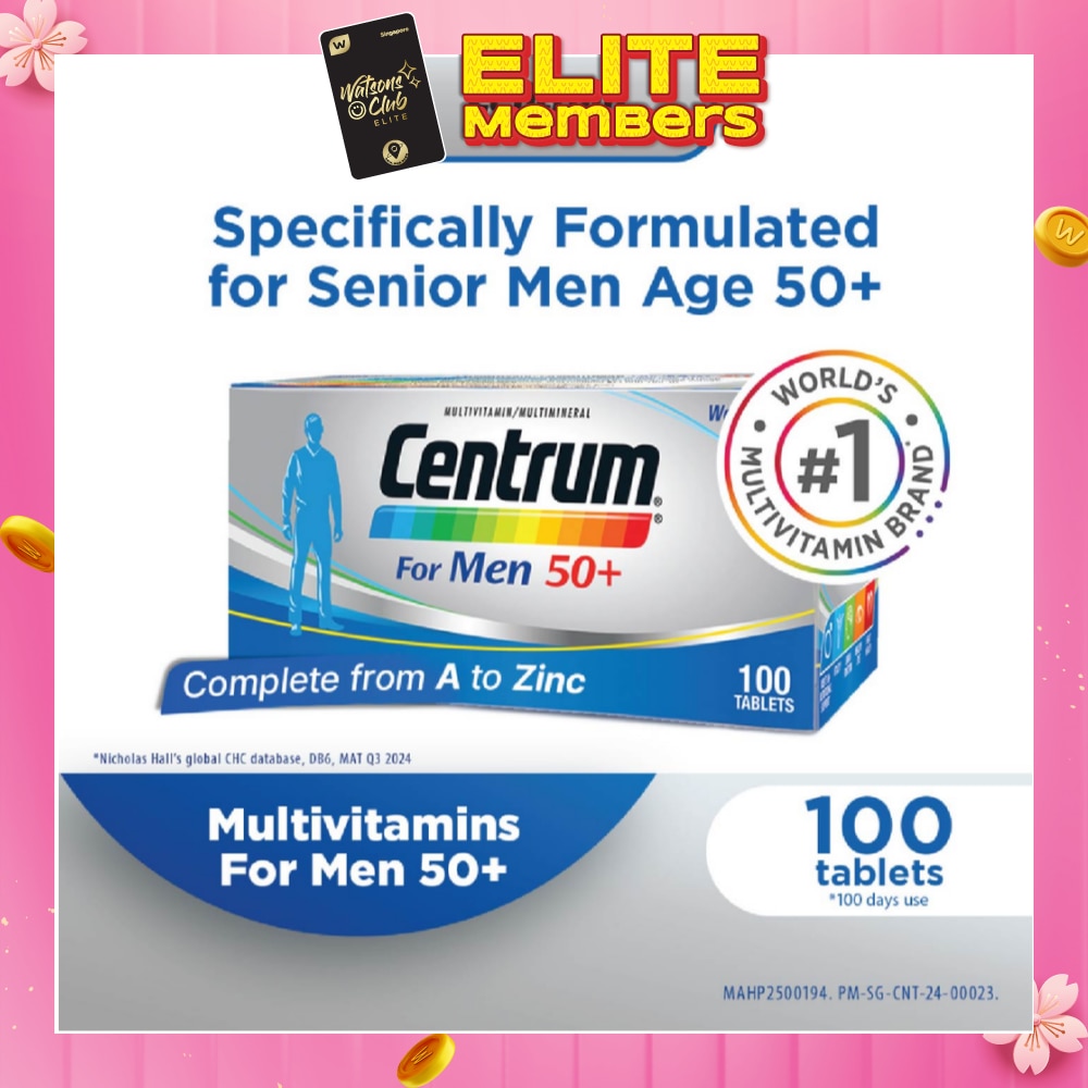 Centrum® for Men 50+ is formulated with more Lutein, Zinc, Magnesium and B group vitamins to specifically meet the health needs of men over 50.