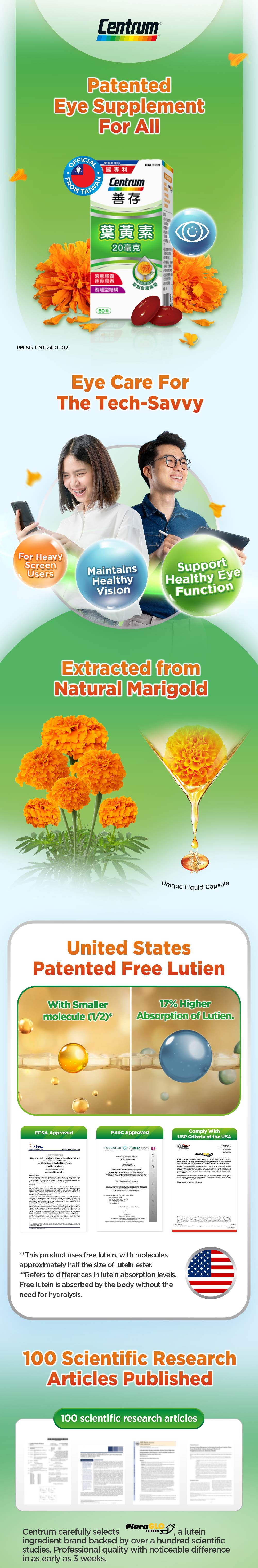 Contains FloraGLO LUTEIN, a lutein ingredient brand backed by over a hundred scientific studies and is extracted from natural Marigold.