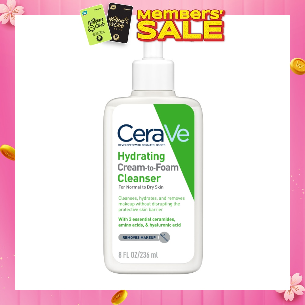Developed with dermatologists, CeraVe Hydrating Cream-to-Foam Cleanser begins as a cream before transforming to a soft foam when you begin to lather it on the skin with water, and effectively removes dirt and makeup without stripping the skin’s natural moisture or leaving it feeling tight and dry.
