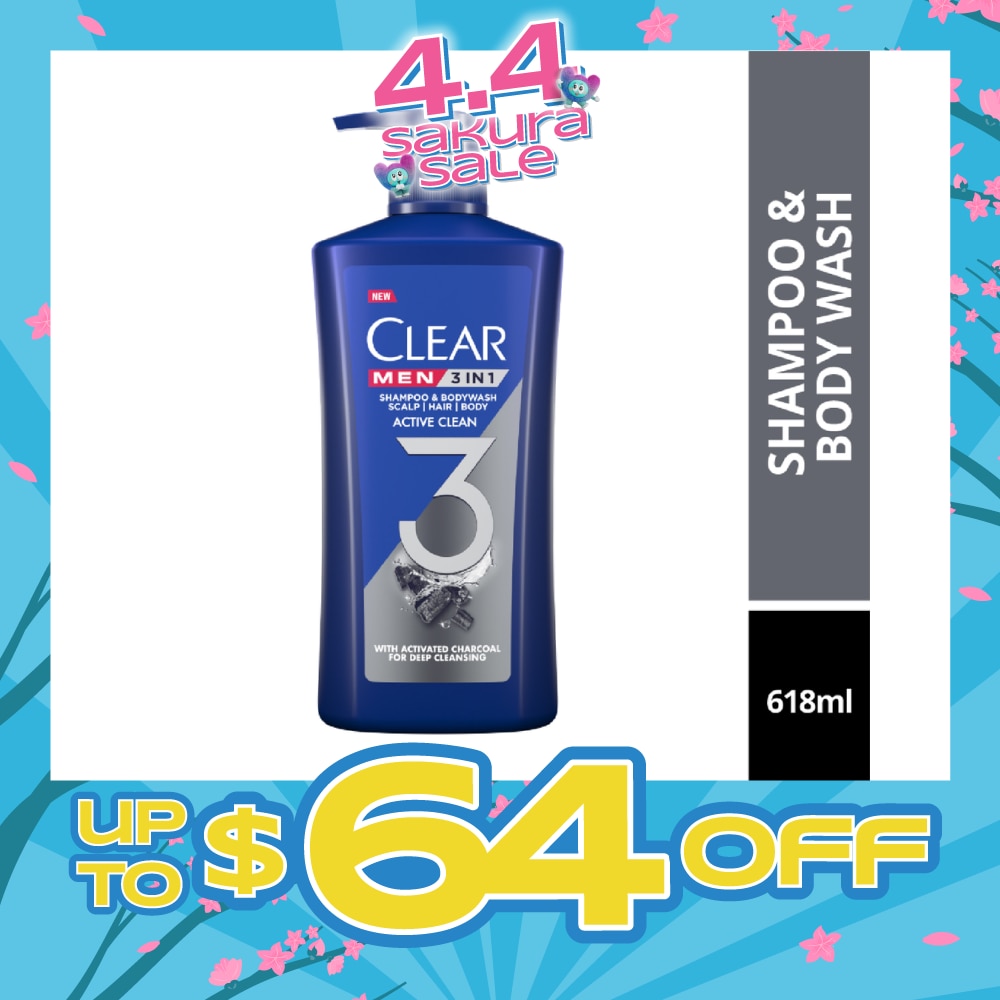 CLEAR Men 3 in 1 Shampoo & Bodywash Active Clean 618g