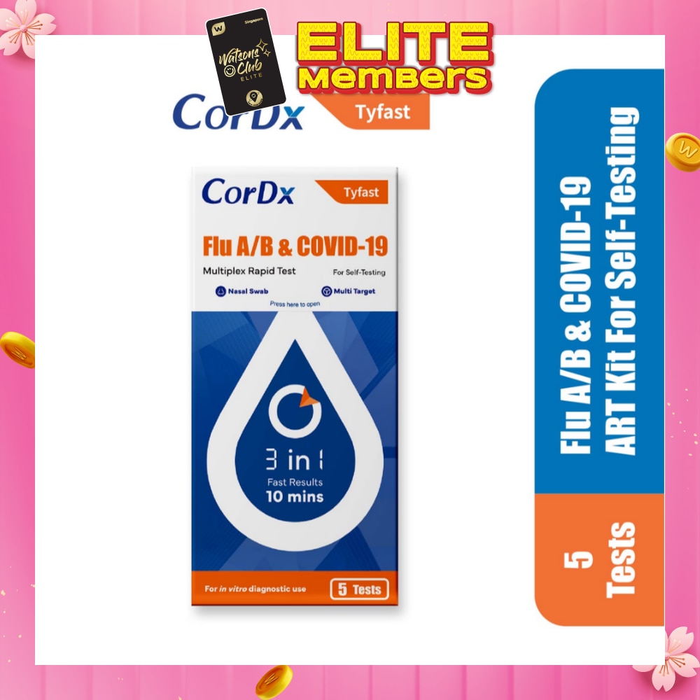 The CorDx Tyfast Flu A/B & COVID-19 ART Kit For Self-Testing is a lateral flow immunoassay intended for the qualitative detection and di erentiation of SARS-CoV-2, influenza A, and influenza B protein antigens.