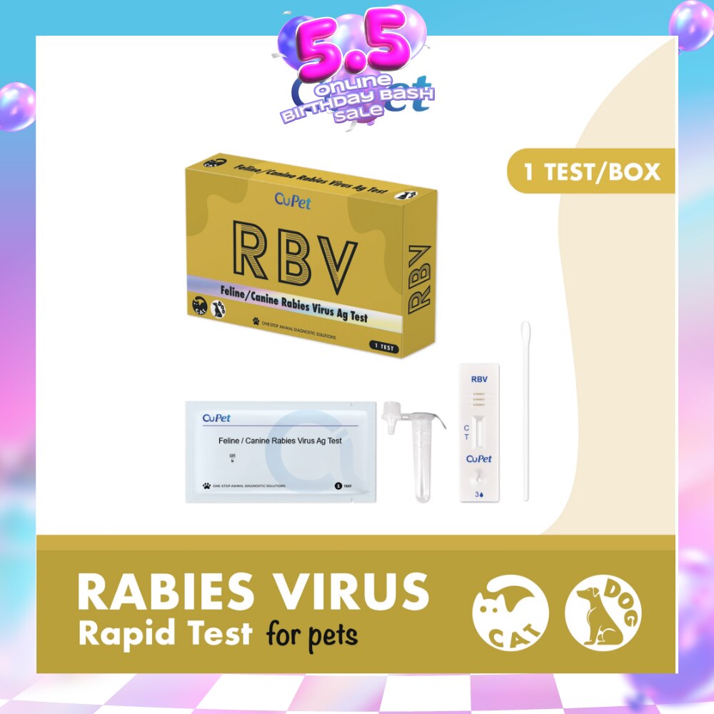 CuPet Canine/Feline Rabies Virus (RBV) Ag Test is an in-vitro test for detecting rabies virus antigen in canine/feline saliva and ocular or nasal discharge.
