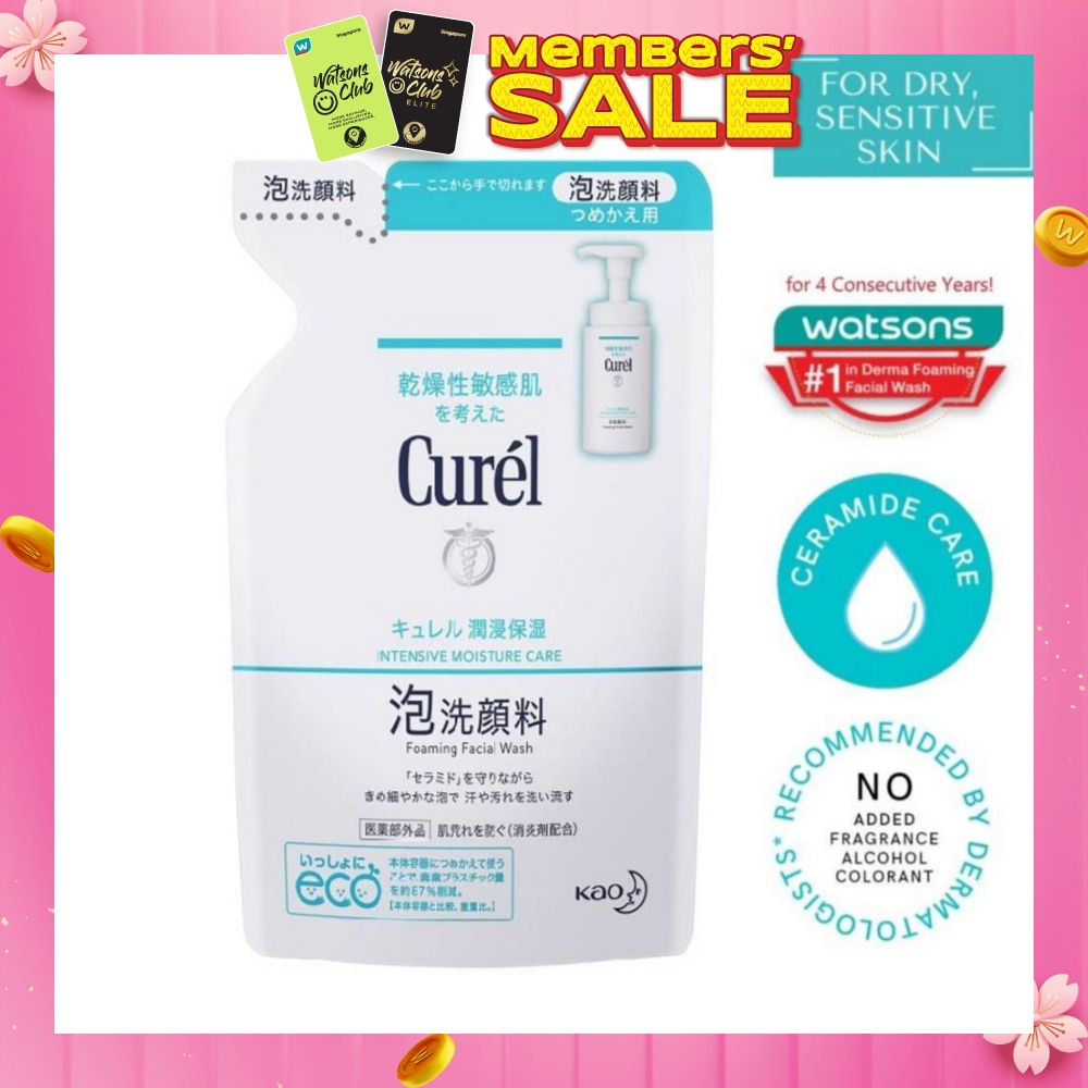 Curel Intensive Moisture Care Foaming Facial Wash Refill 130ml is the refill pack for Curel Intensive Moisture Care Foaming Facial Wash bottle only. Suitable for sensitive skin, it cleanses gently while protecting your skin's natural ceramide, keeping skin's moisture retention capability with no tight after-feel.