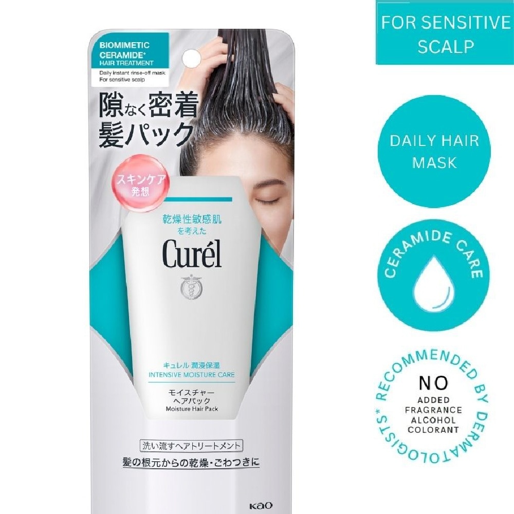 Curel Intensive Moisture Care Moisture Hair Pack 200g Rinse-off hair treatment that is easy to rinse off, non-sticky, and combines Ceramide to moisturize hair from roots to ends, while protecting hair from dryness and tangling, leaving it soft and smooth, easy to style.