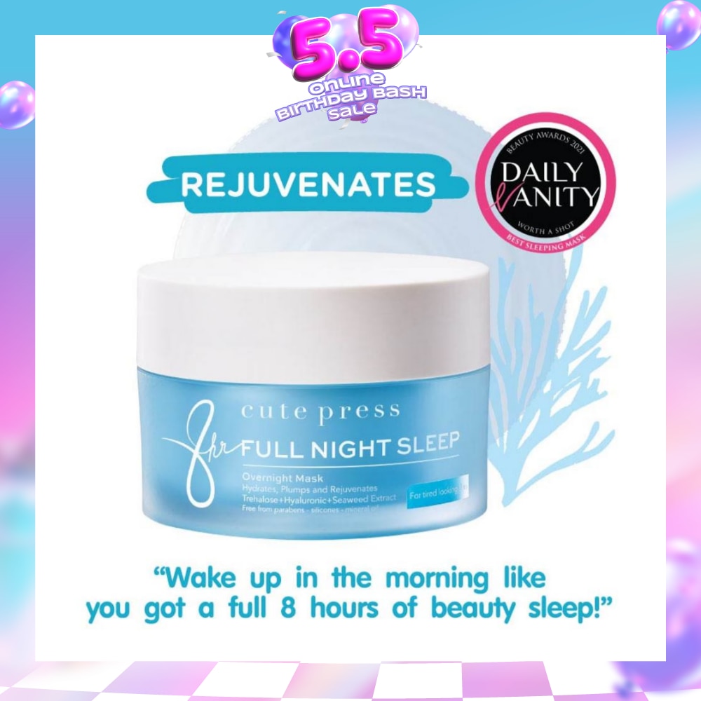 REJUVENATE – with Cute Press 8hr Full Night Sleep Overnight Mask, this leave-on mask will rejuvenate & plump up your skin overnight, so you will wake up in the morning like you got a full 8 hours of beauty sleep! You can leave it on *no rinse or wash off needed!