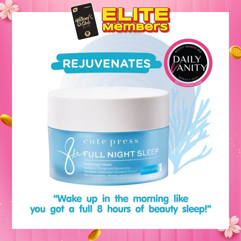 REJUVENATE – with Cute Press 8hr Full Night Sleep Overnight Mask, this leave-on mask will rejuvenate & plump up your skin overnight, so you will wake up in the morning like you got a full 8 hours of beauty sleep! You can leave it on *no rinse or wash off needed!