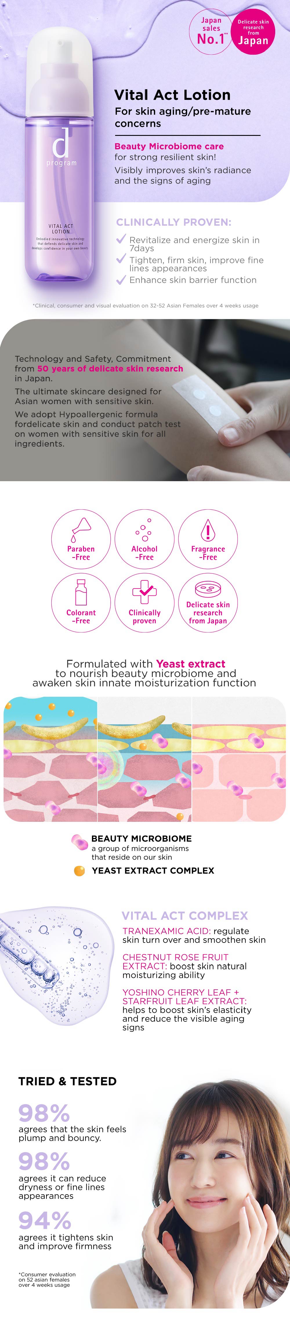 4. With Shiseido's unique absorption promoting ingredient and oil miniaturisation technology that allows easy absorption of lotion into skin, such that beauty ingredients can go deeper into skin to moisturise and maintain skin's natural barrier function.