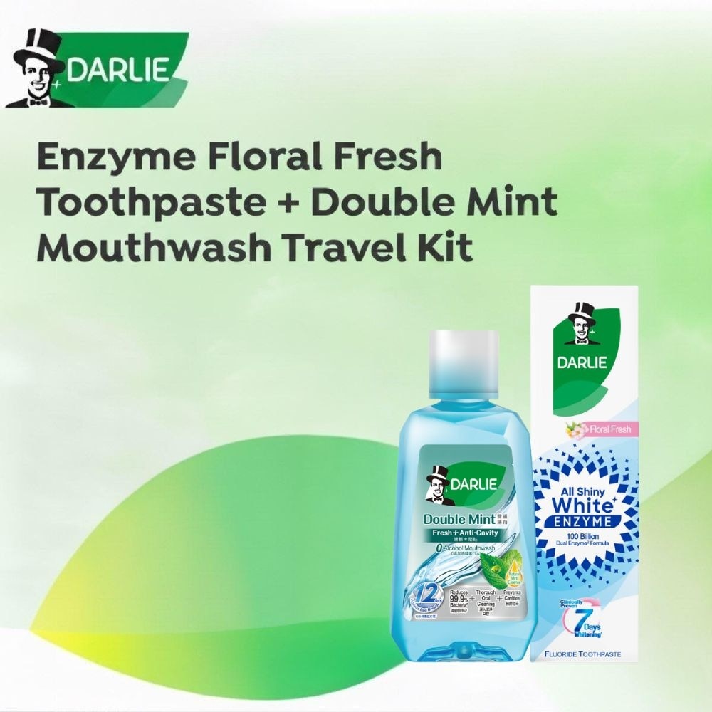 All Shiny White Enzyme Dental Travel Kit consists of All Shiny White Enzyme Floral Fresh Toothpaste 25g + Double Mint Mouthwash 50ml