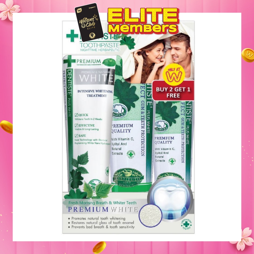 A special combination value pack with whitening and regular toothpastes that effectively whiten stained teeth and inhibit the gowth of oral bacteria that cause bad morning breath, dental diseases and tooth decay.