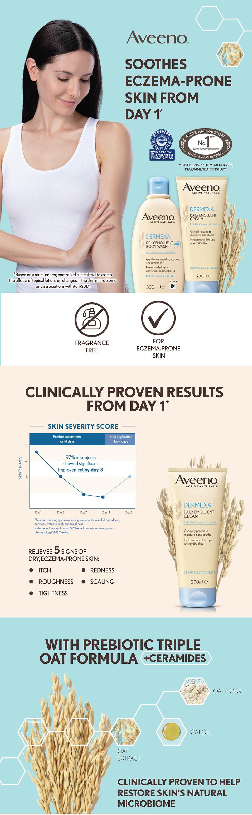 This clinically proven formula helps to reduce flare-ups, moisturizes and soothes very dry and itchy skin for immediate comfort. With prebiotic oat complex* and ceramides it helps to strengthen the skin barrier and help to improve the skin's natural microbiome balance for healthy looking more resilient skin from day 1.