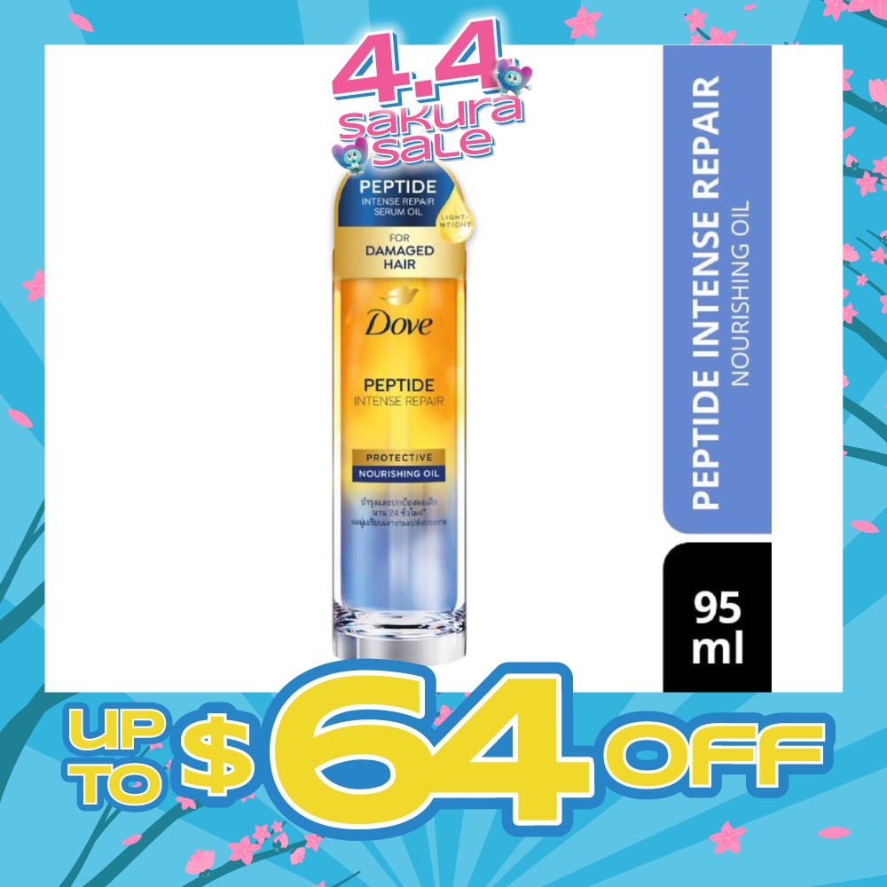 Our New Dove Peptide Intense Repair Protective Nourishing Oil makes hair shiny and radiant. Enriched with Peptide Complex, it nourishes hair directly to make it softer, smoother, and beautiful. Creates a barrier to protect and nourish hair damaged by heat and UV. For best results, recommended to use complete range together with Dove Intense Repair Shampoo, Conditioner, and Serum Treatment Mask.