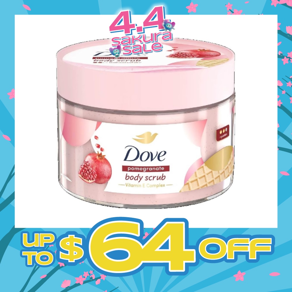 Dove's New Pomegranate Body Scrub, With Moderate Exfoliation Strength To Help Remove Dead Skin Cells, Revealing Skin's Softeness And Glow. It Also Contains Glycerin To Replenish Skin Moisture And 1/4 Moisturising Cream To Deeply Nourish Skin.