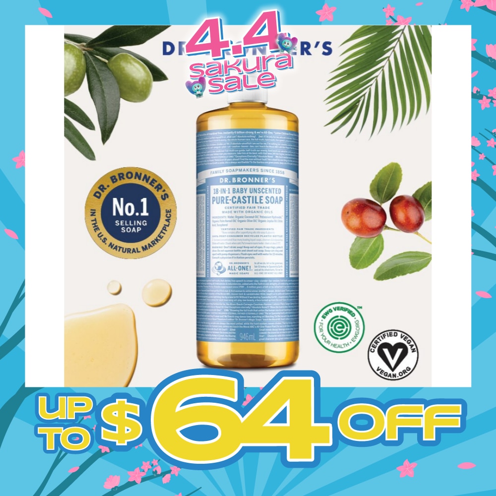 DR BRONNER'S Baby Unscented Pure Castile Liquid Soap 946ml