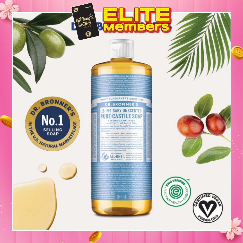 The top-selling soap in the US natural marketplace. Dr. Bronner’s Pure-Castile Liquid Soaps are ecological, effective and versatile liquid soaps with 18-in-1 uses in a single bottle. Formulated with only the purest organic and certified fair trade ingredients, the Pure-Castile Liquid Soap contains coconut oil for a luxurious foam that nourishes and cleanses skin, olive oil for skin softness and jojoba oil for a lasting silkiness.