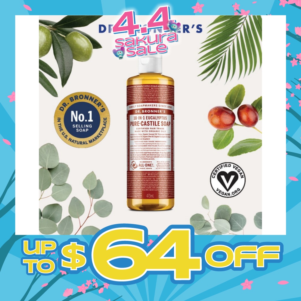 The top-selling soap in the US natural marketplace. Dr. Bronner’s Pure-Castile Liquid Soaps are ecological, effective and versatile liquid soaps with 18-in-1 uses in a single bottle. Formulated with only the purest organic and certified fair trade ingredients, the Pure-Castile Liquid Soap contains coconut oil for a luxurious foam that nourishes and cleanses skin, olive oil for skin softness and jojoba oil for a lasting silkiness.