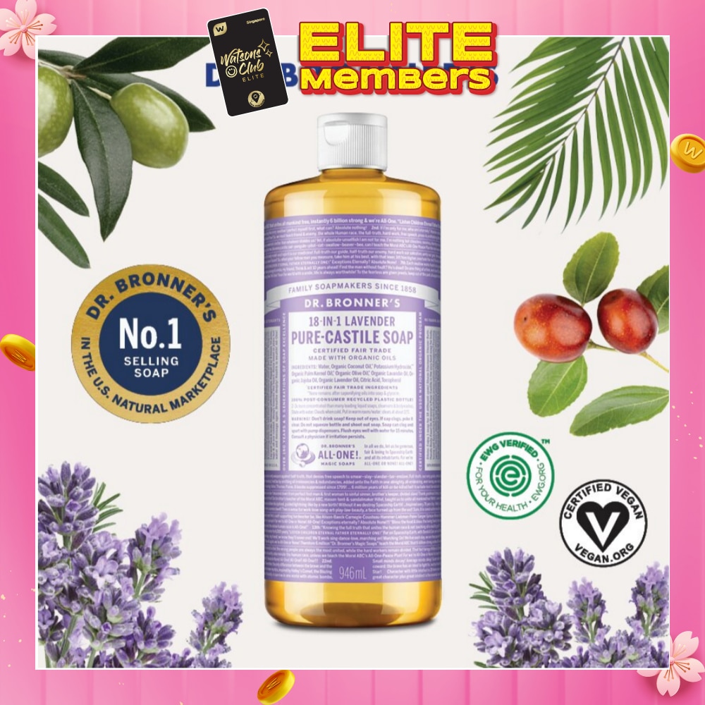 The top-selling soap in the US natural marketplace. Dr. Bronner’s Pure-Castile Liquid Soaps are ecological, effective and versatile liquid soaps with 18-in-1 uses in a single bottle. Formulated with only the purest organic and certified fair trade ingredients, the Pure-Castile Liquid Soap contains coconut oil for a luxurious foam that nourishes and cleanses skin, olive oil for skin softness and jojoba oil for a lasting silkiness.