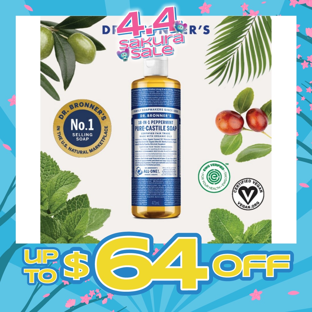 The top-selling soap in the US natural marketplace. Dr. Bronner’s Pure-Castile Liquid Soaps are ecological, effective and versatile liquid soaps with 18-in-1 uses in a single bottle. Formulated with only the purest organic and certified fair trade ingredients, the Pure-Castile Liquid Soap contains coconut oil for a luxurious foam that nourishes and cleanses skin, olive oil for skin softness and jojoba oil for a lasting silkiness.