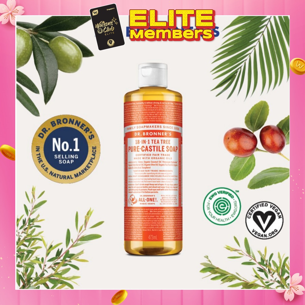 The top-selling soap in the US natural marketplace. Dr. Bronner’s Pure-Castile Liquid Soaps are ecological, effective and versatile liquid soaps with 18-in-1 uses in a single bottle. Formulated with only the purest organic and certified fair trade ingredients, the Pure-Castile Liquid Soap contains coconut oil for a luxurious foam that nourishes and cleanses skin, olive oil for skin softness and jojoba oil for a lasting silkiness.