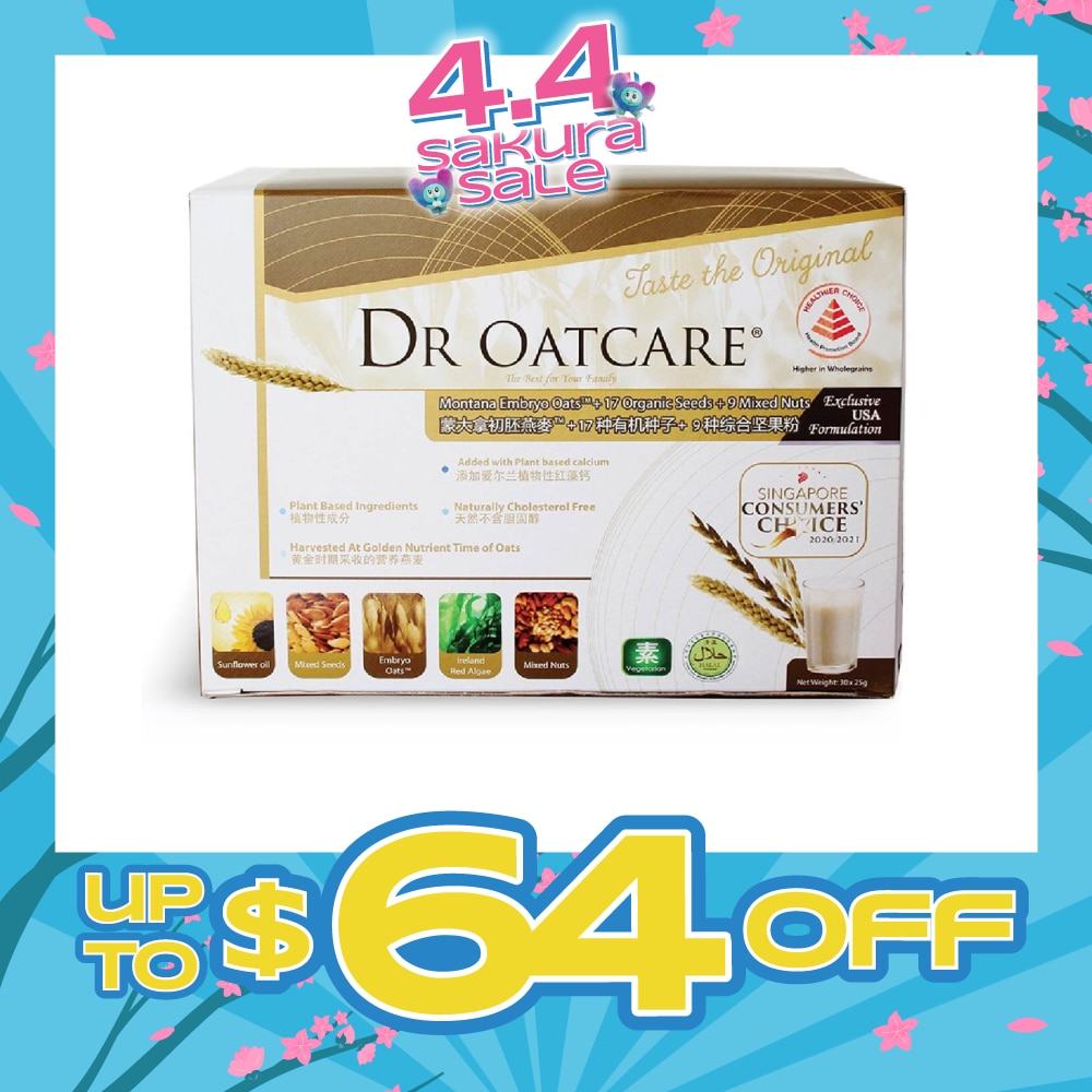 DR OATCARE Daily Nutritional Drink Naturally Cholesterol Free Vegetarian with Plant Based Ingredients 25g x 30s